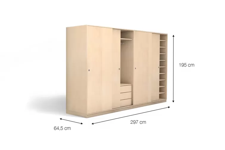 „Der gerade Schrank mit Drehtüren ist ein wahrer „Alleskönner". Dieses Schrankmodell eignet sich für jede Raumsituation. Aufgrund der zahlreichen Ausstattungs- und Konfigurationsmöglichkeiten kann der Schrank als moderner Schlafzimmerschrank gleichermaßen wie als praktisches Aufbewahrungssystem im Hobbyraum eingesetzt werden.“