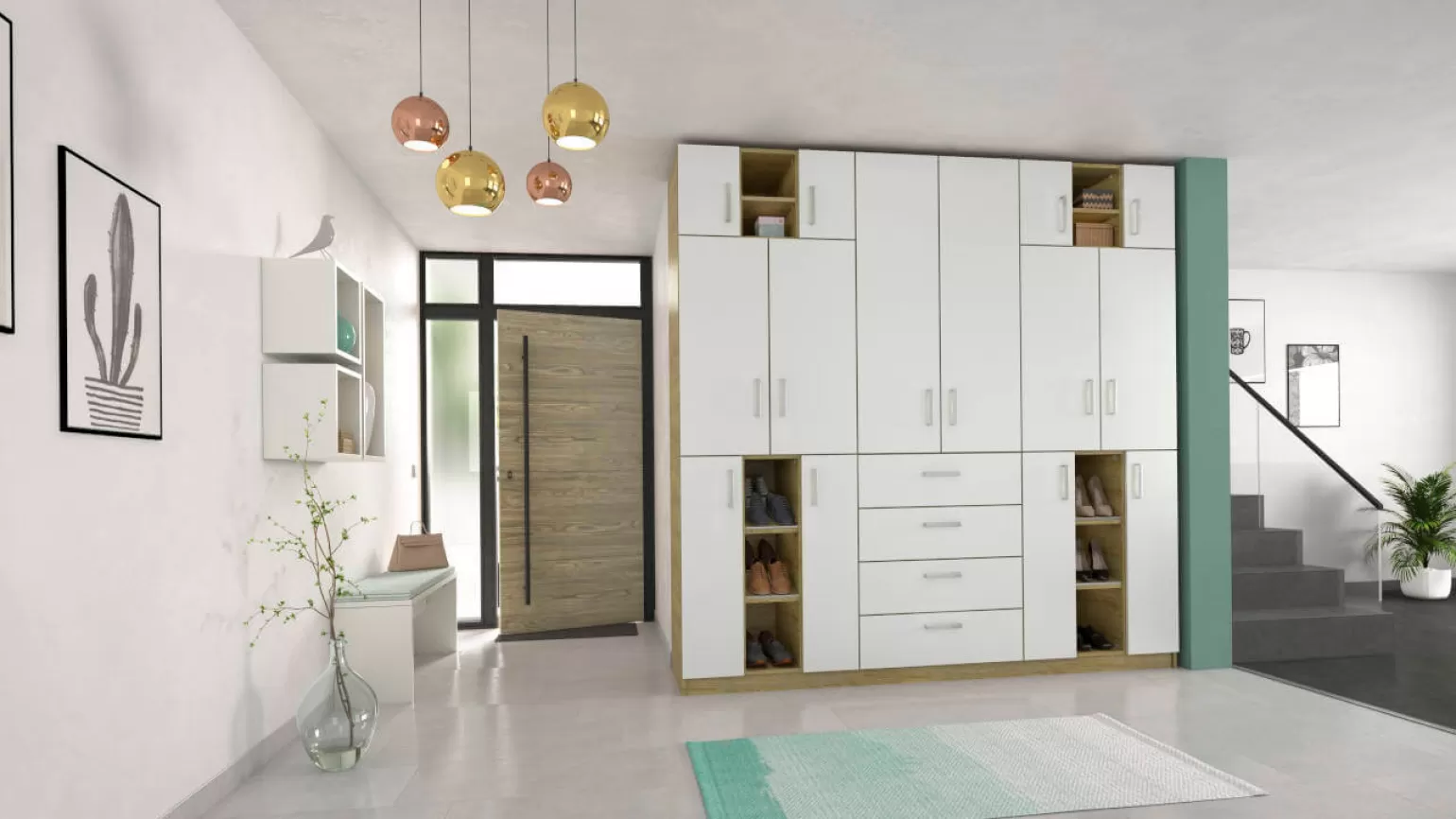 „Der gerade Schrank mit Drehtüren ist ein wahrer „Alleskönner". Dieses Schrankmodell eignet sich für jede Raumsituation. Aufgrund der zahlreichen Ausstattungs- und Konfigurationsmöglichkeiten kann der Schrank als moderner Schlafzimmerschrank gleichermaßen wie als praktisches Aufbewahrungssystem im Hobbyraum eingesetzt werden.“