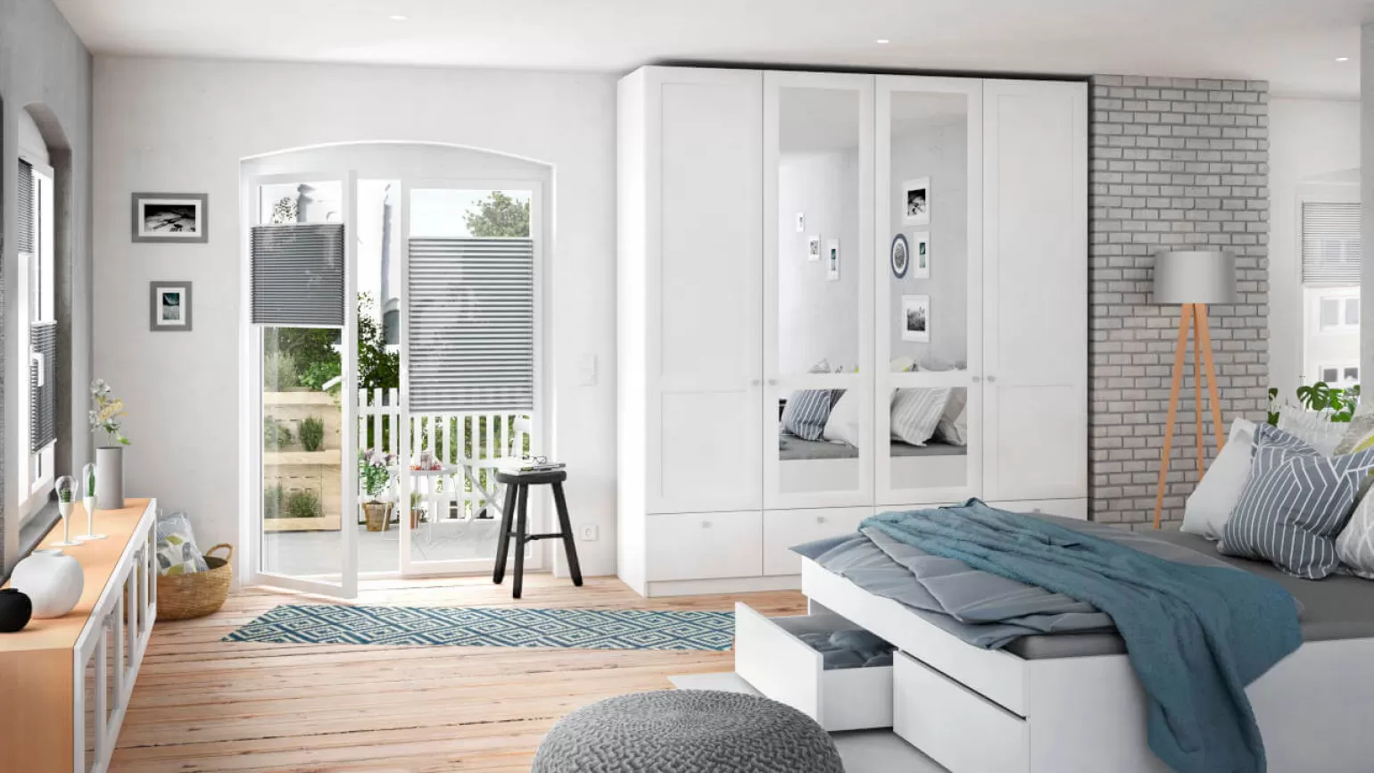 Wenn ein Kleiderschrank zum Beispiel mit im Schlafzimmer stehen soll, ist häufig nur noch wenig Platz im Raum. Damit du die Schranktüren dennoch öffnen kannst und problemlos an den Inhalt deines Schranks kommst, bieten sich Alternativen zu den klassisch aufschwingenden Drehtüren an.