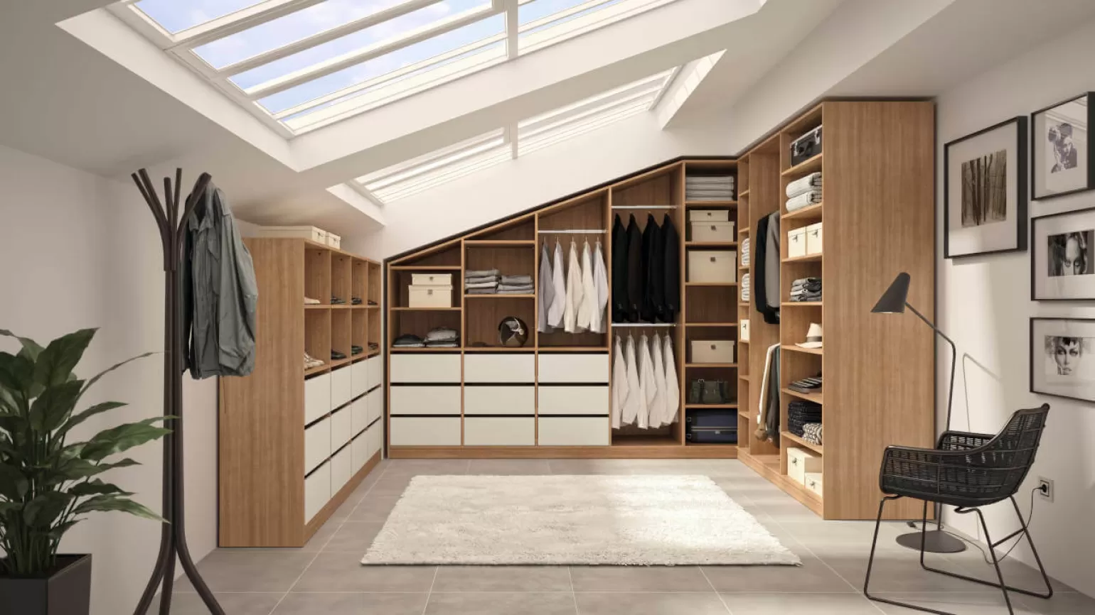 Mit maßgefertigten Möbeln lassen sich selbst schwierige Raumsituationen in eine schicke Ankleide verwandeln.